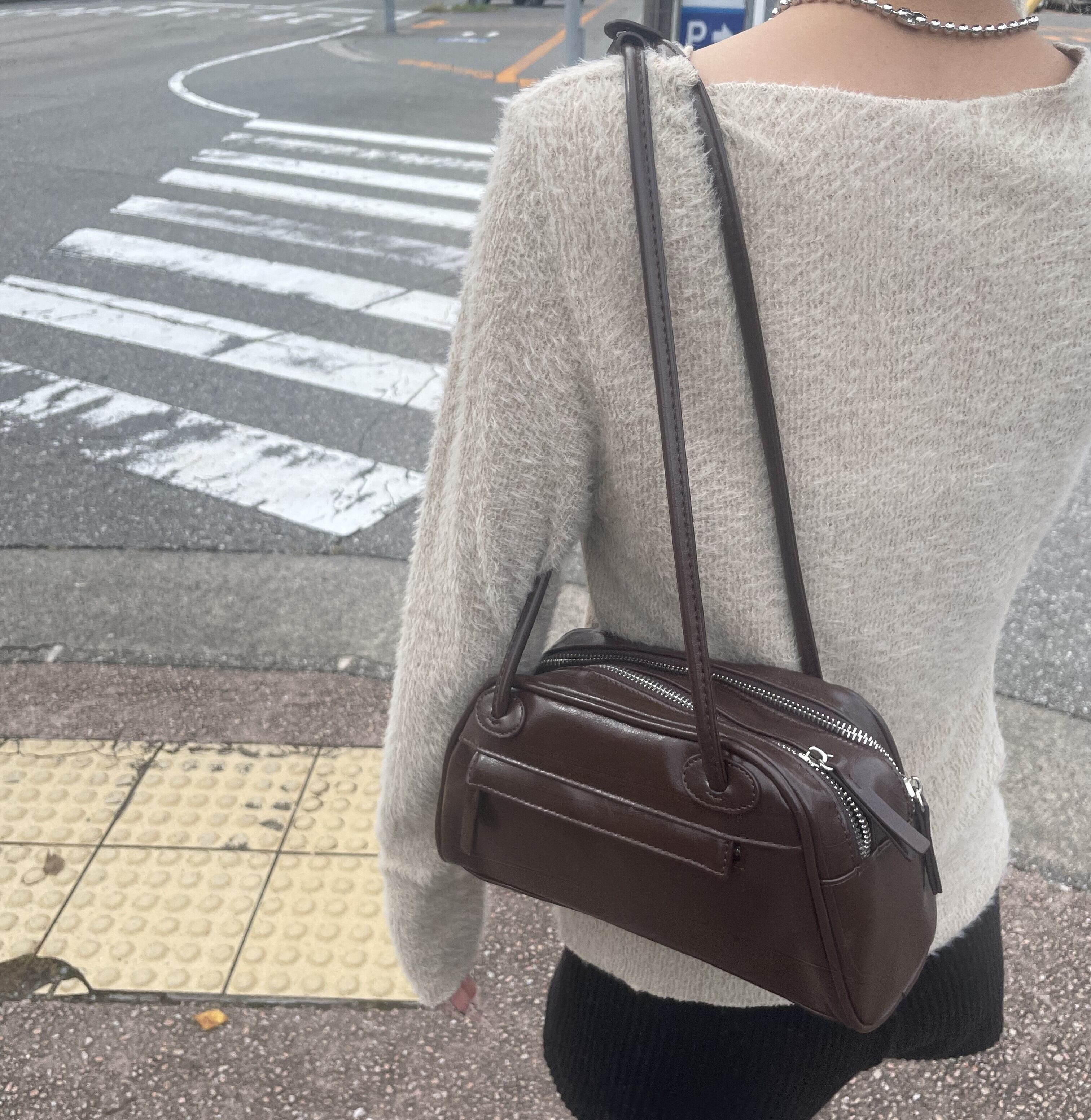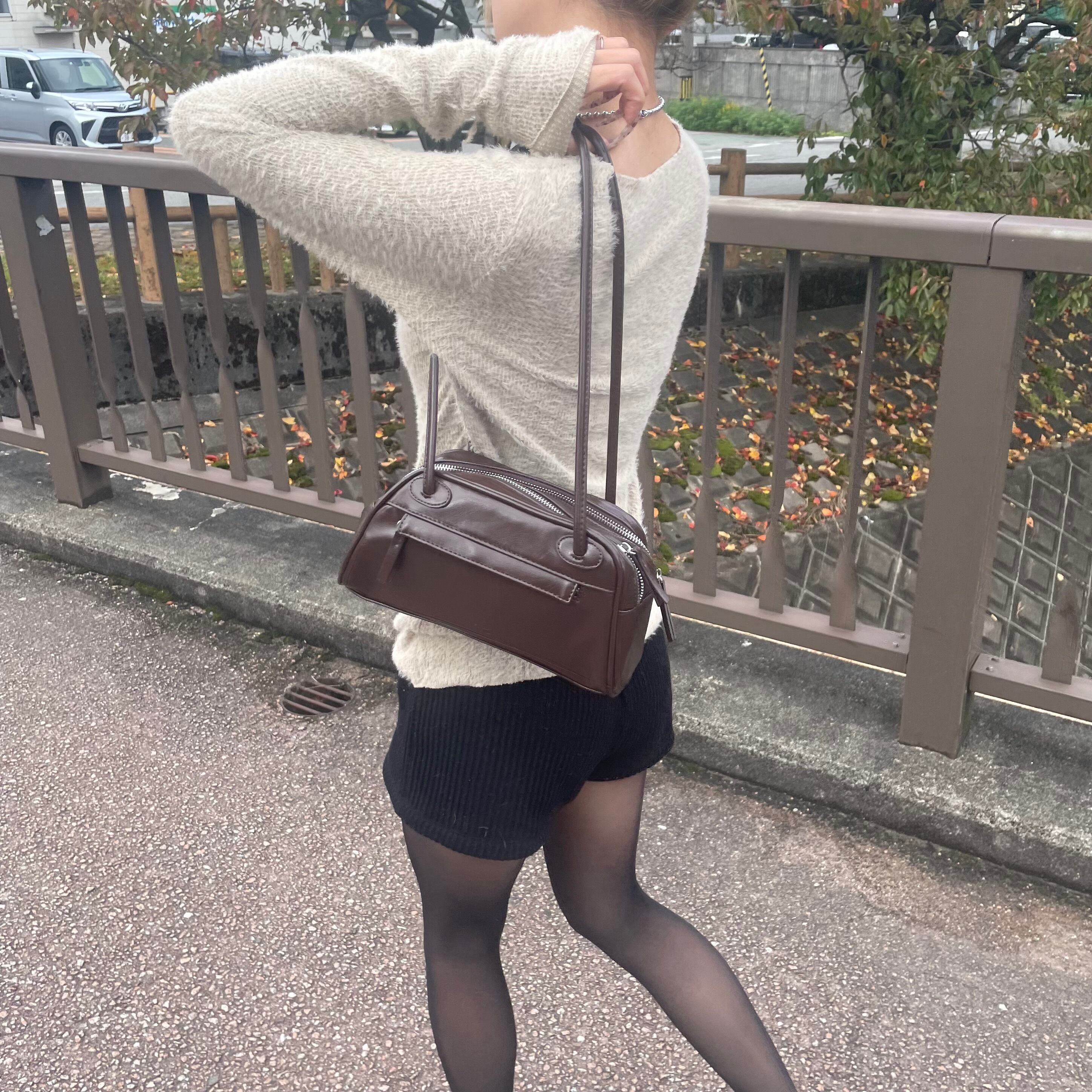 double zipper shoulder bag (brown)
